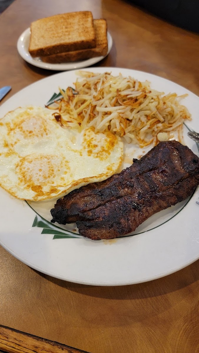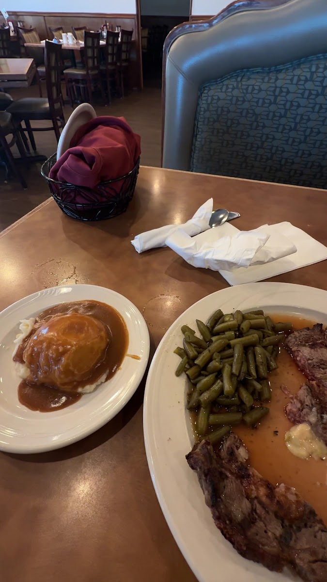 Stopped by on a weekday around 4–5 PM, parking was wide open . Inside felt spacious but tables are a bit too close for me . Ordered a marbled steak —thought it was beef (hopefully ). Taste was honestly 2–3/5; I’ve had much better. The orange juice was a win, tasted fresh, though the glass was small . Service was great —clean tables, tidy place, and the waitress worked like a pro . Steak was $25 —pretty standard. Overall good vibes, but the steak flavor didn’t impress .
